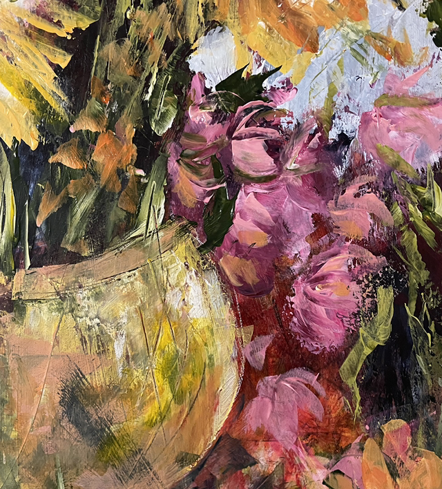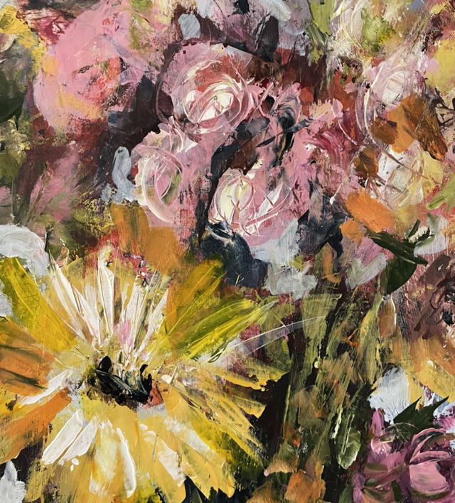 „Life in full bloom“ - das Leben in voller Blüte! Genieße die Fülle der Blüten und ihre Pracht, die sich dir auf diesem Kunstwerk zeigen, tauche ein in die Vielfalt der Formen und Farben. Pure Lebensfreude, die aus der prall-runden Vase hervorquillt, überzusprudeln scheint, voller Euphorie und Kraft, ein Bild, das dir neue Energie schenkt, wann immer du es anschaust!
